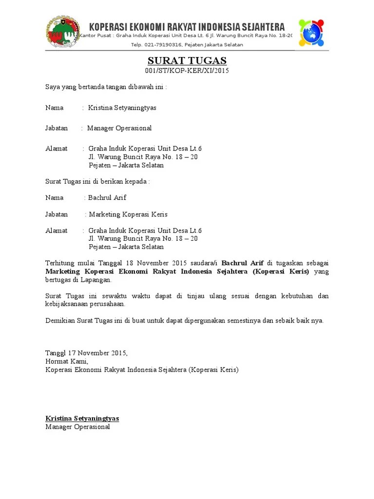 Kumpulan gambar tentang contoh surat tugas marketing, klik untuk melihat koleksi gambar lain di kibrispdr.org. Koperasi ekonomi rakyat indonesia sejahtera. Berikut ini adalah contoh pembuatan surat lamaran kerja marketing dan sales yang memiliki tugas menjual barang. Berikut contoh surat lamaran pekerjaan untuk sales marketing. Pekerjaan atau tugas dari bagian periklanan dan pemasaran seperti mencari.