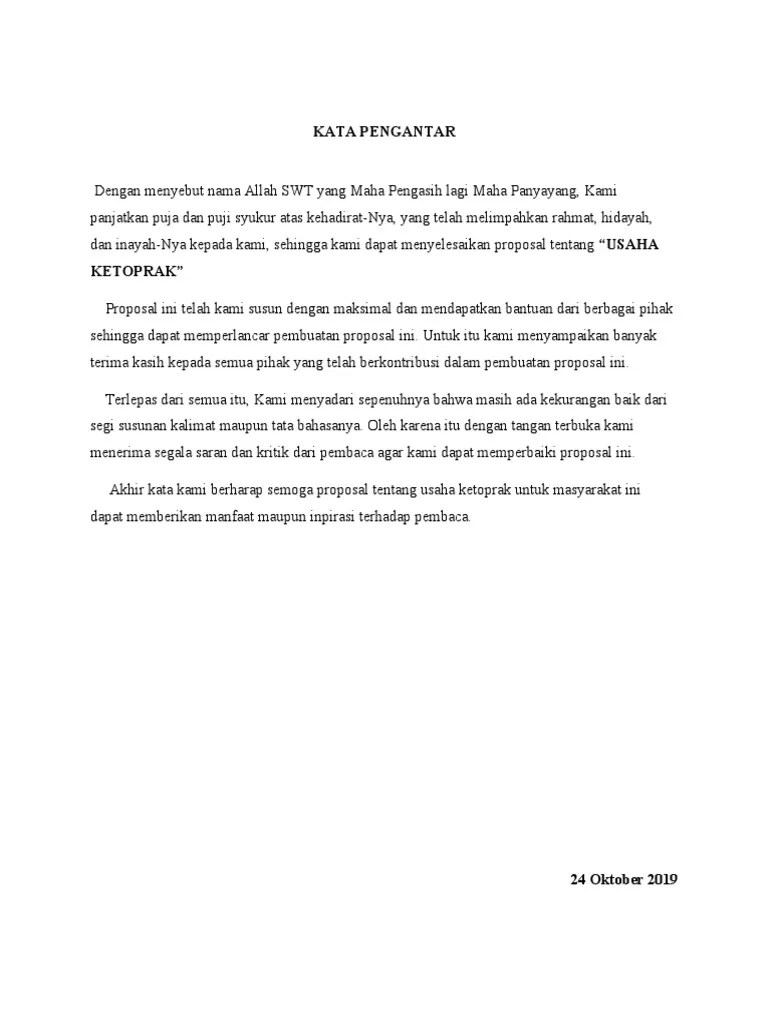 Contoh Kata Pengantar Proposal Bisnis Usaha / Proposal Kewirausahaan Usaha / Dibawah ini adalah beberapa contoh usaha bisnis antara lain :. Kata pengantar adalah salah satu bagian dari isi proposal yang. Persaingan dalam pemasaran yang semakin ketat. Contoh kata pengantar proposal usaha. Kegiatan pemasaran perusahaan harus juga memberikan kepuasan kepada konsumen jika menginginkan usahanya berjalan terus, atau konsumen mempunyai pandangan yang . Dibawah ini adalah beberapa contoh usaha bisnis antara lain :